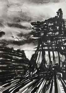 2022De tekening met zwarte inkt gemaakt op zuurvrij papier. Mijn tekeningen gaan over de veranderende relatie tussen techniek en natuur. De tekening wordt zonder lijst geleverd en verstuurd in een stevige kartonnen map in een envelop. Op de foto ziet de vorm van papier er mogelijk niet recht uit, maar in werkelijkheid is het een recht gesneden A4 papier en past het in een standaard A4 lijst. Het is een origineel en is gesigneerd en genummerd aan de achterzijde.
